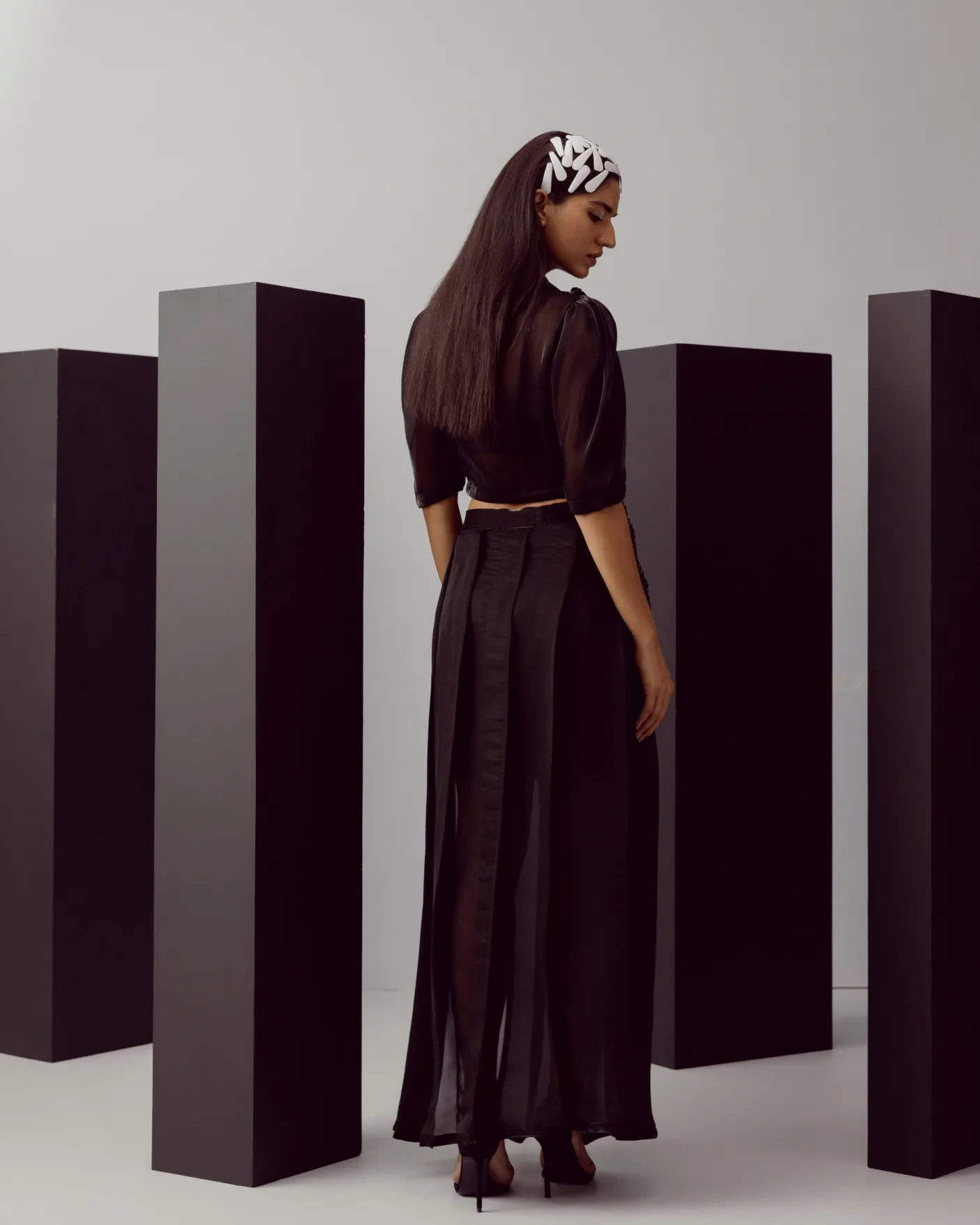 Wrap pleated Skirt in fluid organza with crepe lining inside
