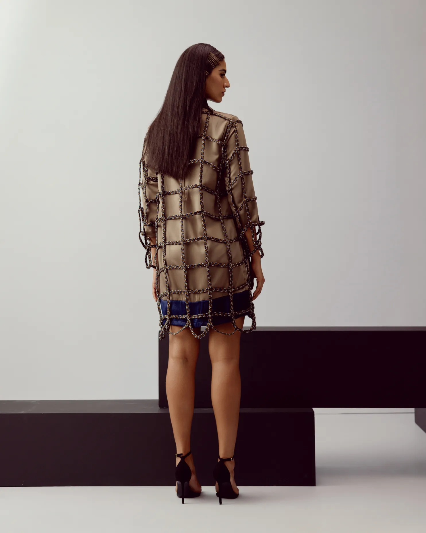 Overlay is handwoven in scrap leather and dori