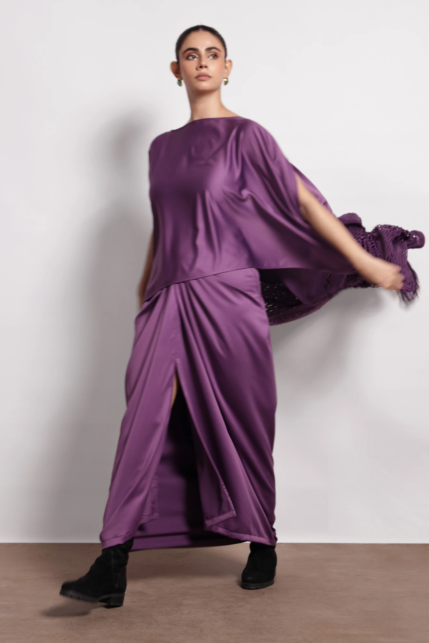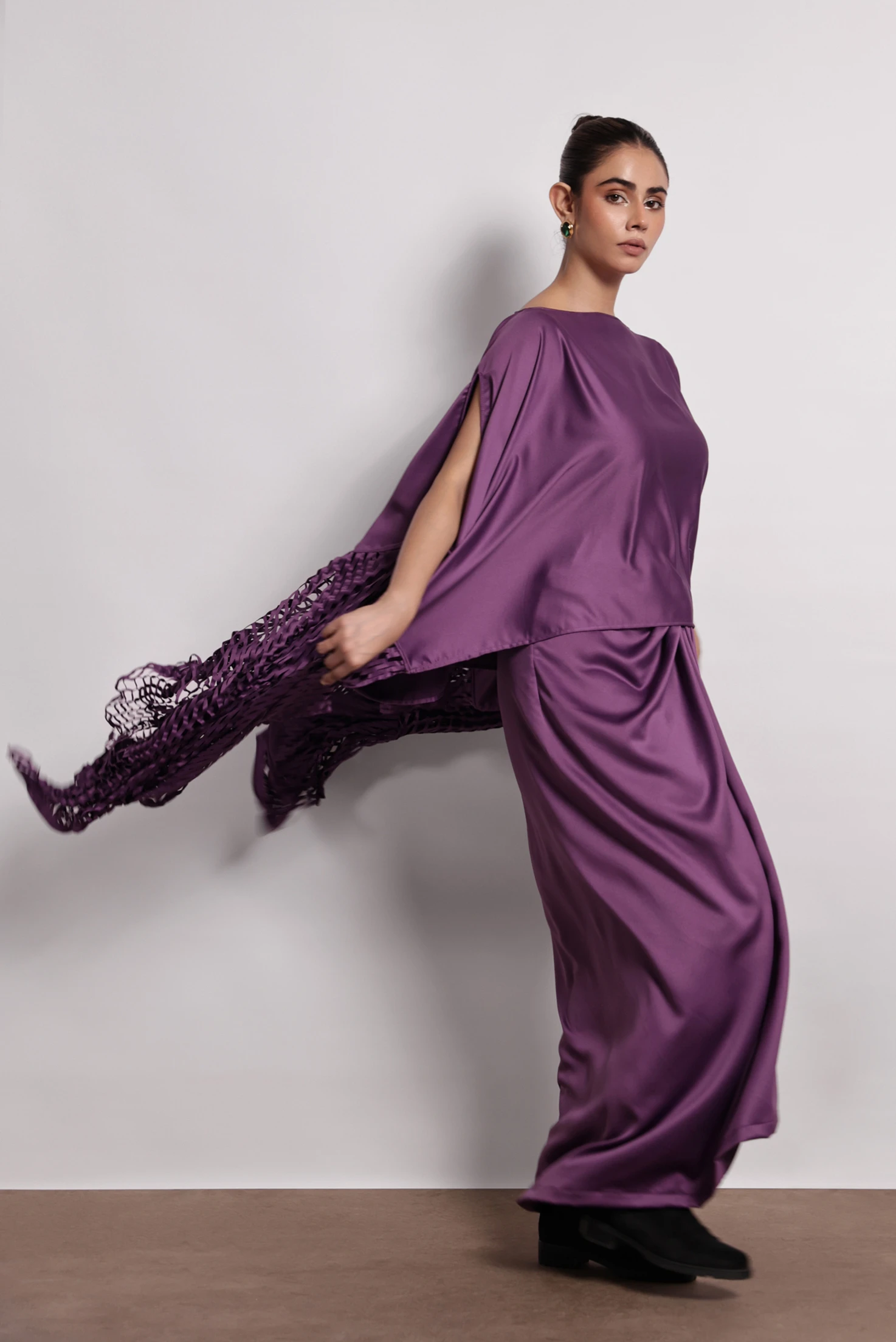 Cape & skirt is in satin crepe fabric