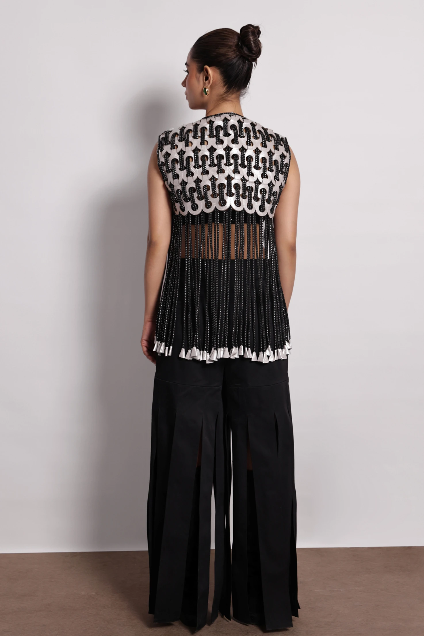 Leather parts are lasercut and joined to form panels with the dori handwoven through it