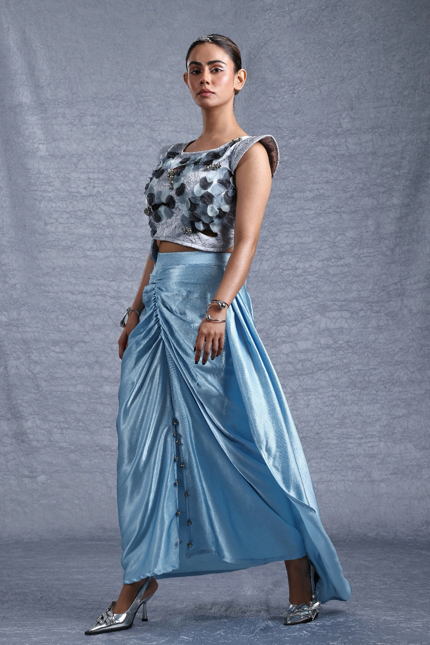 Skirt is in satin fabric with ghungroo embellishment