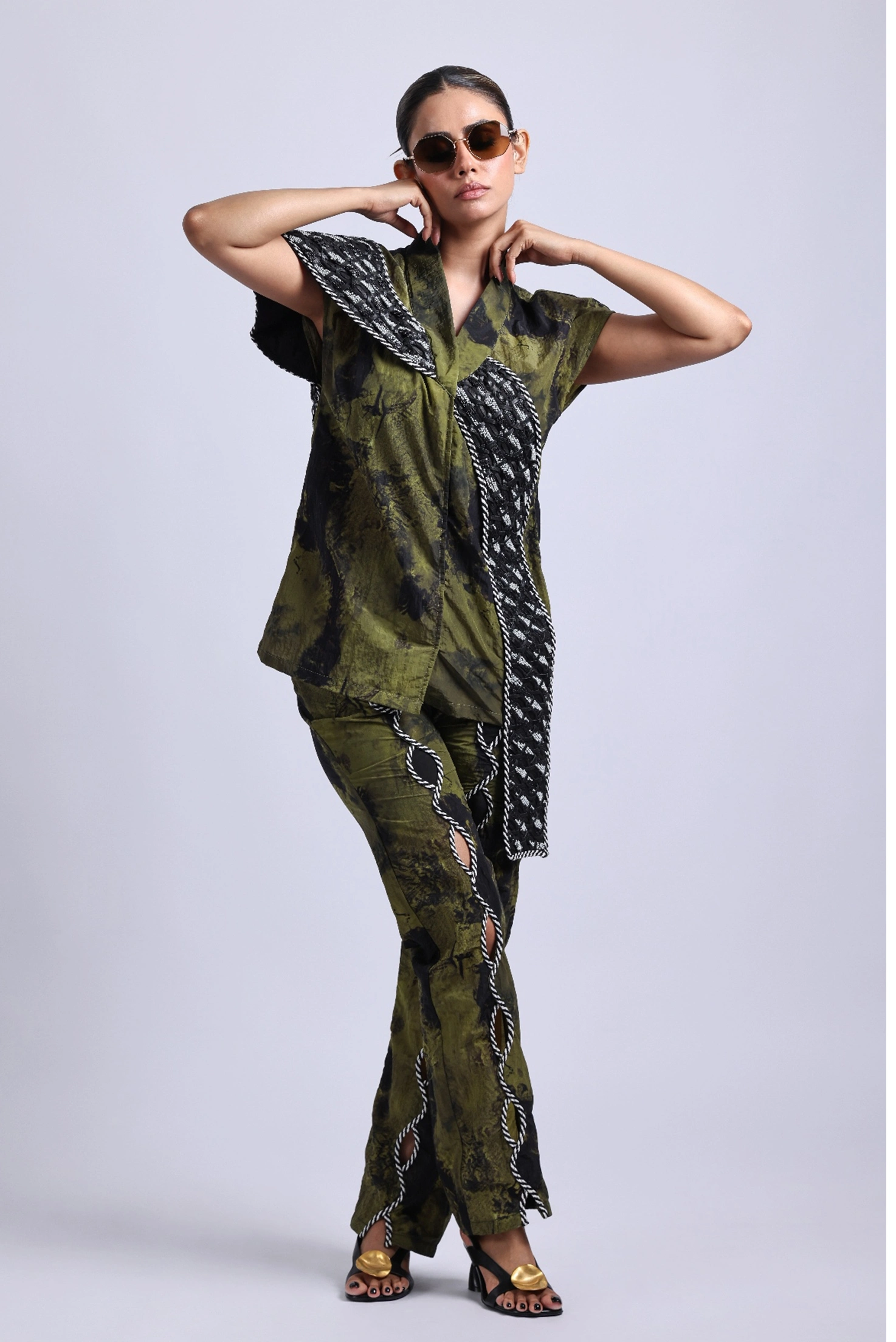 Pant is in printed crepe fabric