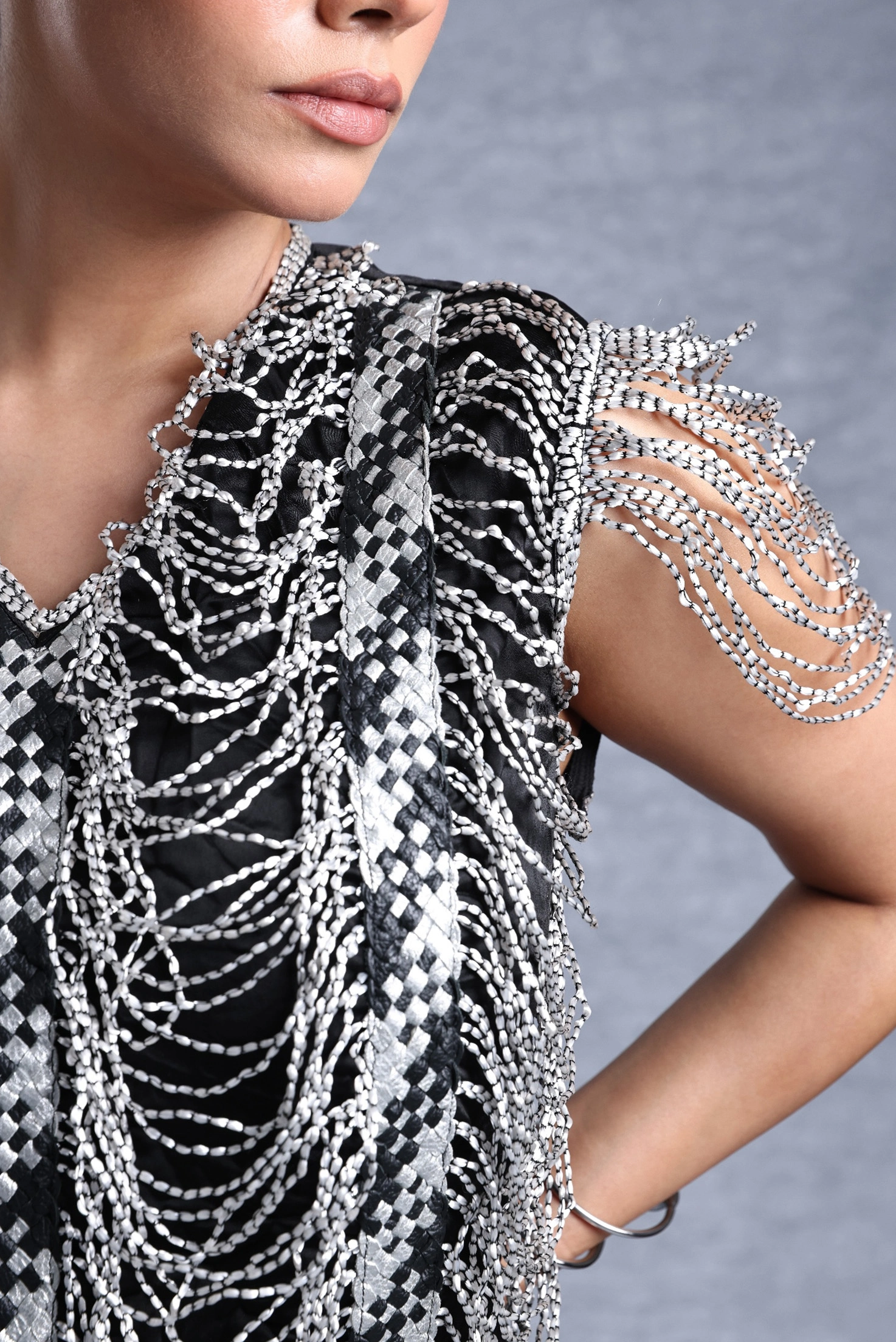 Applique made using dori and scrap leather weave