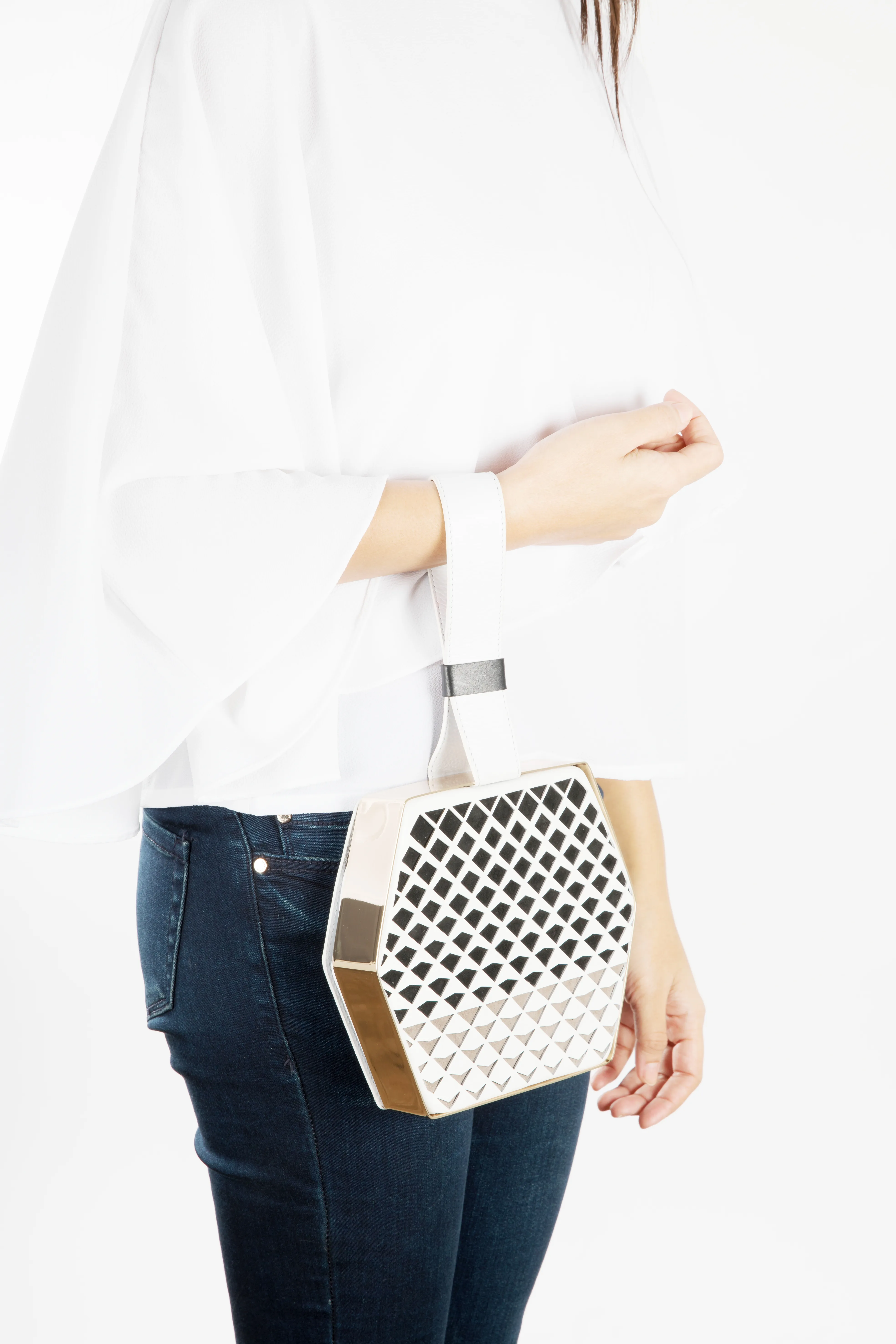 Angular Story Hexagon Cutwork Wristlet
