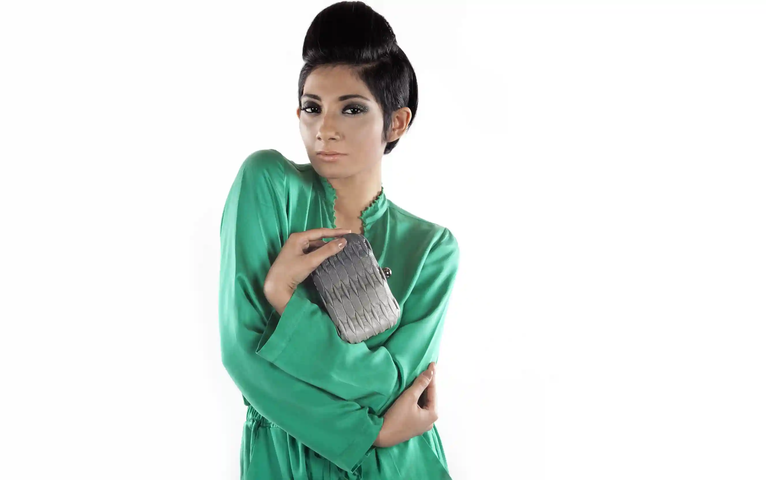 First-hand shaded leather stitched to create different surface textures. It is big enough to hold your phone, lipstick, keys and credit cards. Hold it like a clutch or sling it. Shipped in a gift box and includes a protective dust cover.