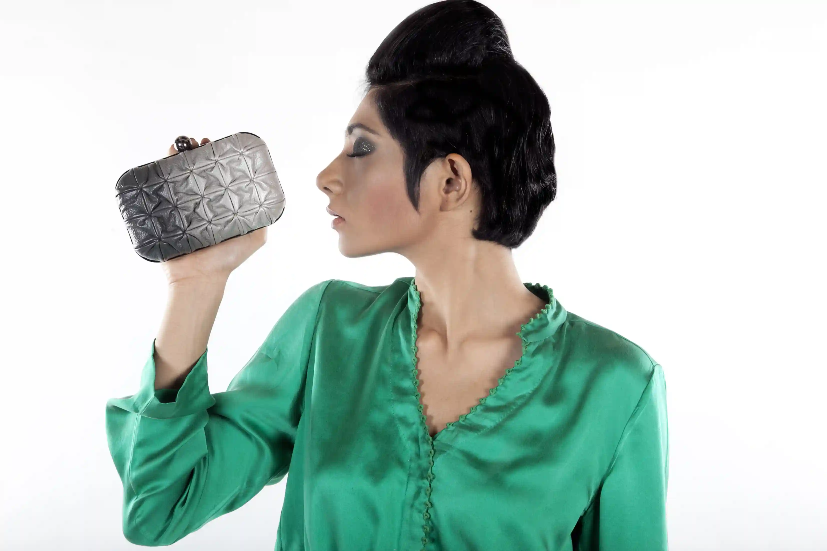 Hand shaded leather is stitched to create different surface textures. It is big enough to hold your phone, lipstick, keys and credit cards. Hold it like a clutch or sling it. Shipped in a gift box and includes a protective dust cover.