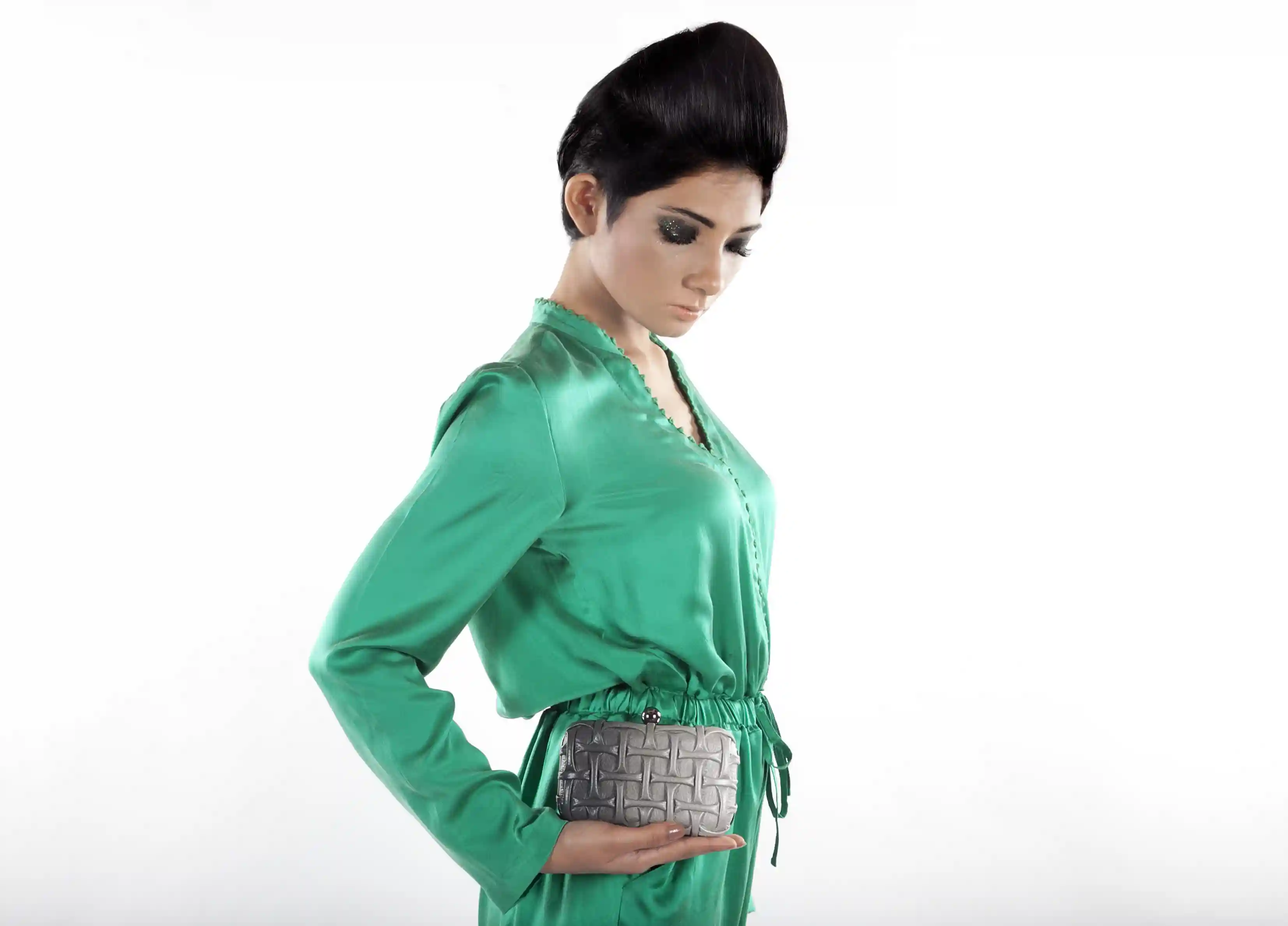 Hand shaded leather is stitched to create different surface textures. It is big enough to hold your phone, lipstick, keys and credit cards. Hold it like a clutch or sling it. Shipped in a gift box and includes a protective dust cover.