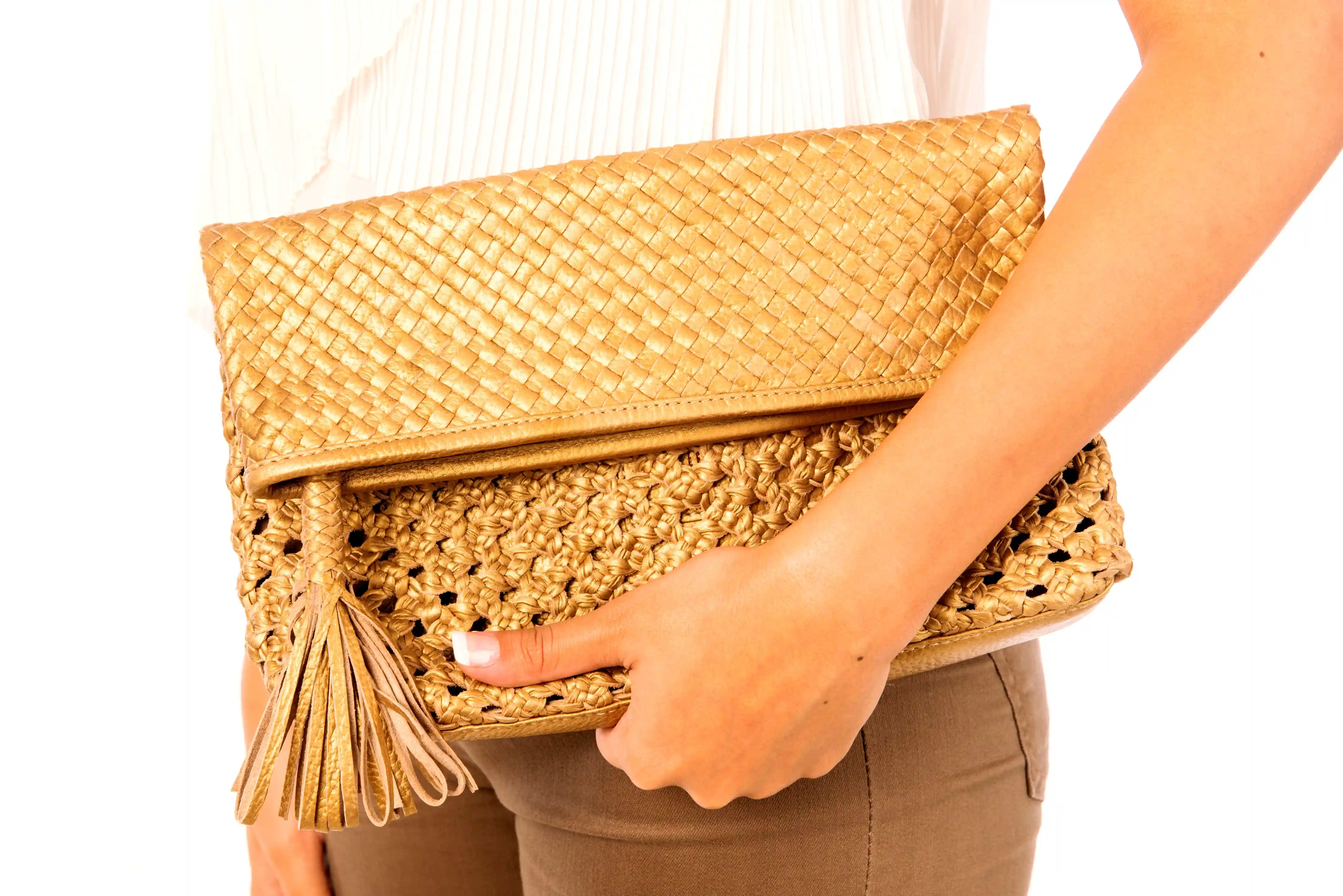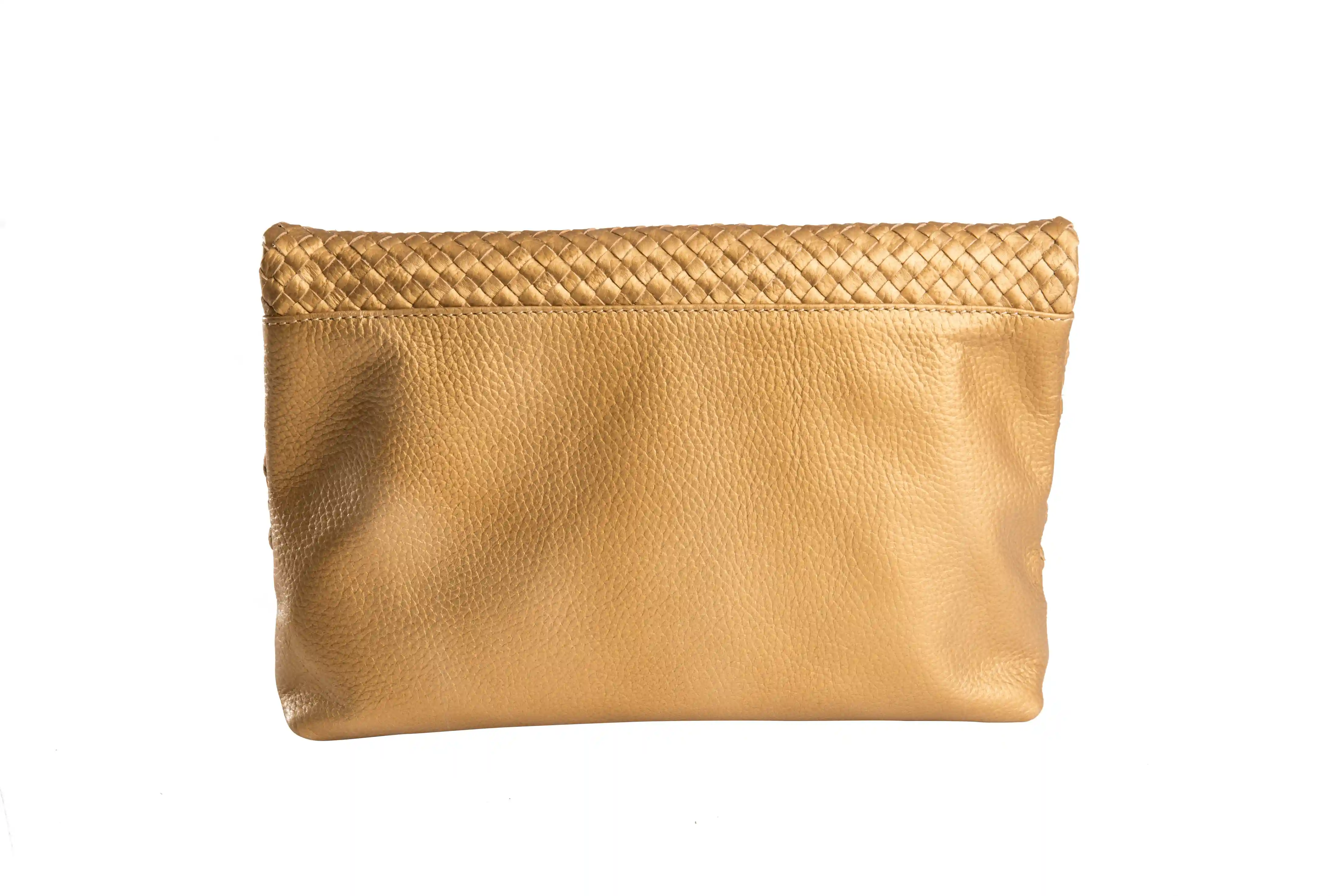 Classic Weave Foldover Clutch in Gold