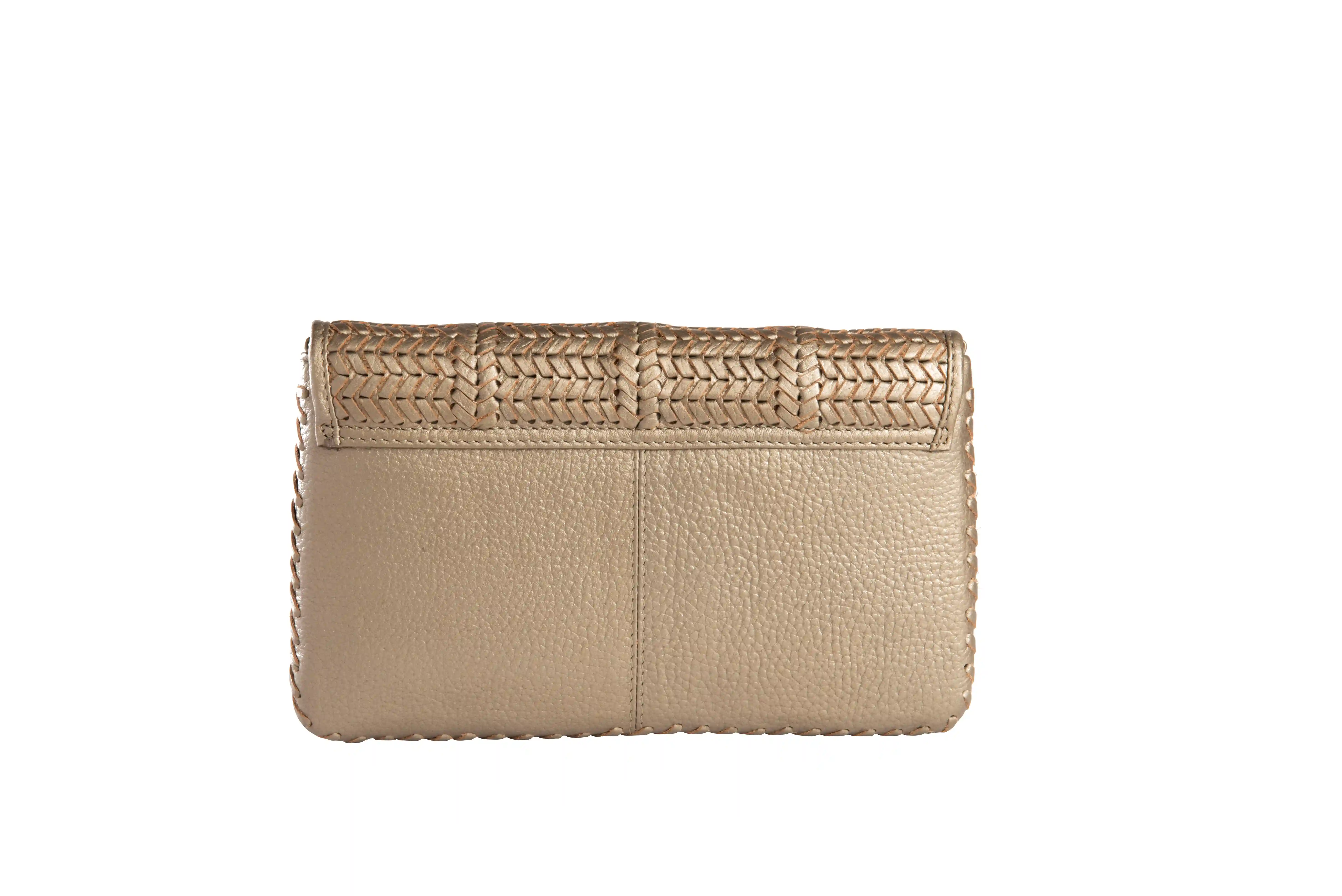 Classic Weave Woven Clutch with Heart Lock in Gunmetal