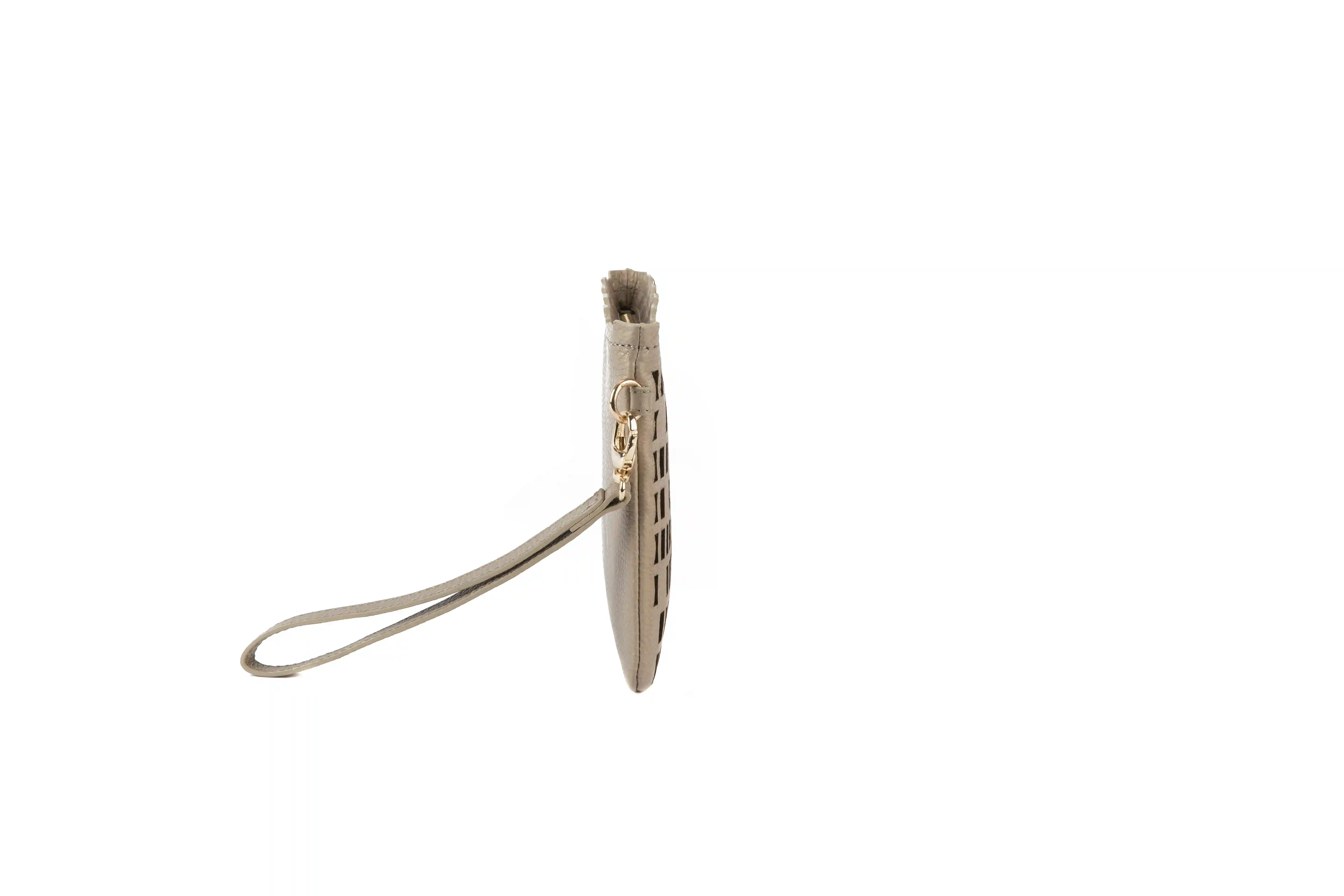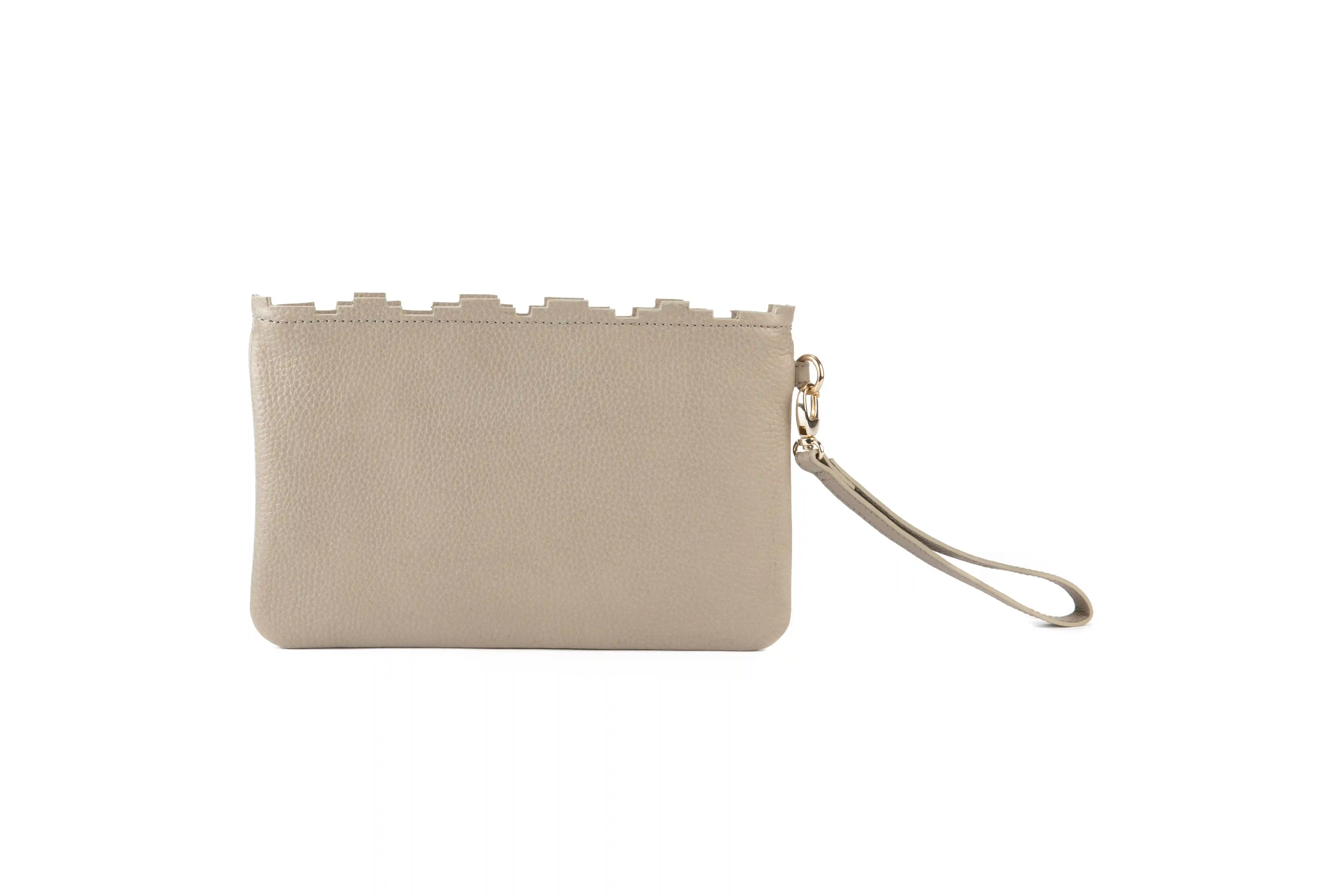 The Skyscraper wristlet features a cutout of multiple high rises wedged together. The bag is lined with 0.5 mm sonolite which gives the wrsitlet a transparent dimension. The wristlet comes with a protective dust cover and is shipped in a gift box.