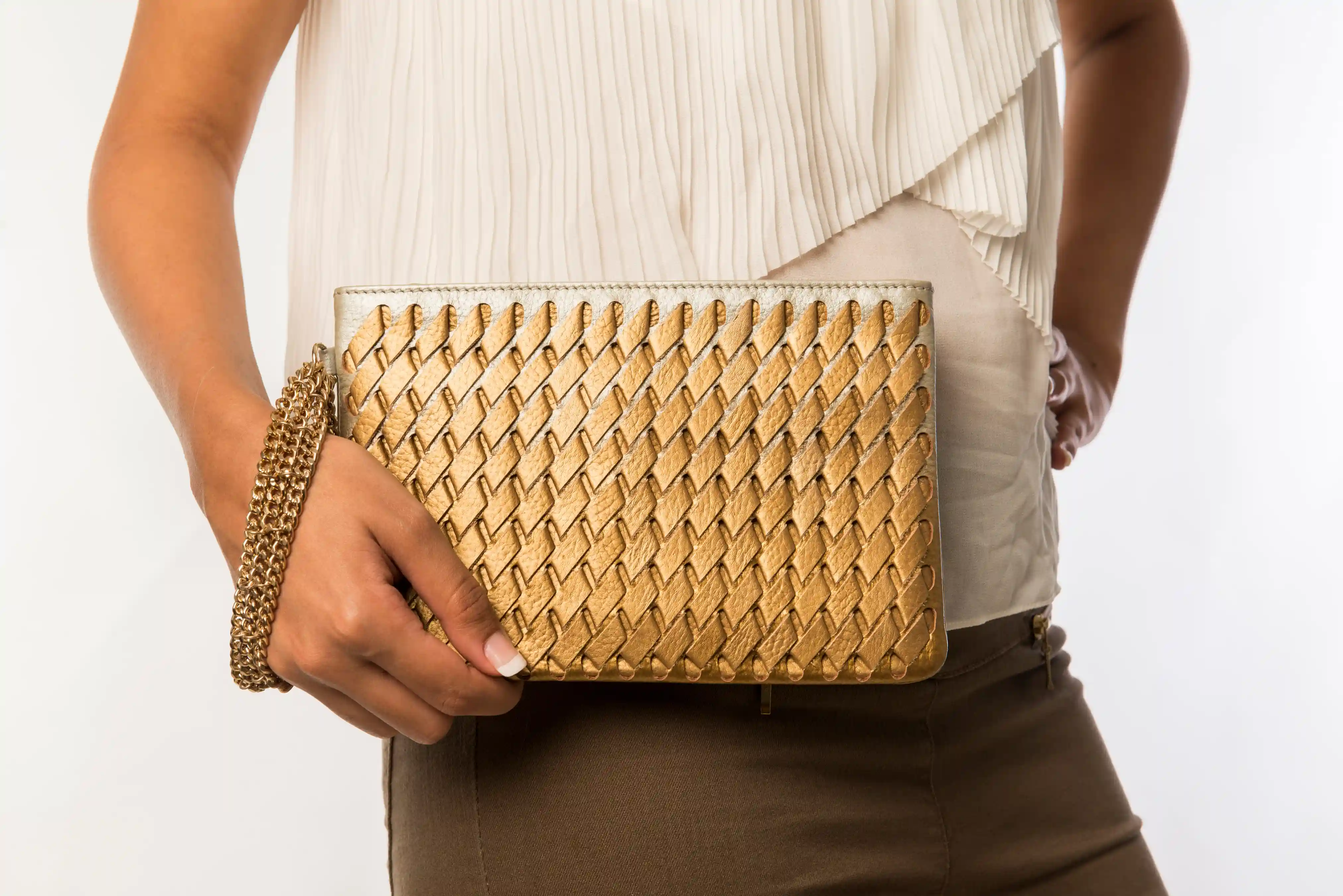 Symphony and Symmetry Long weave Wristlet in Gold-Silver