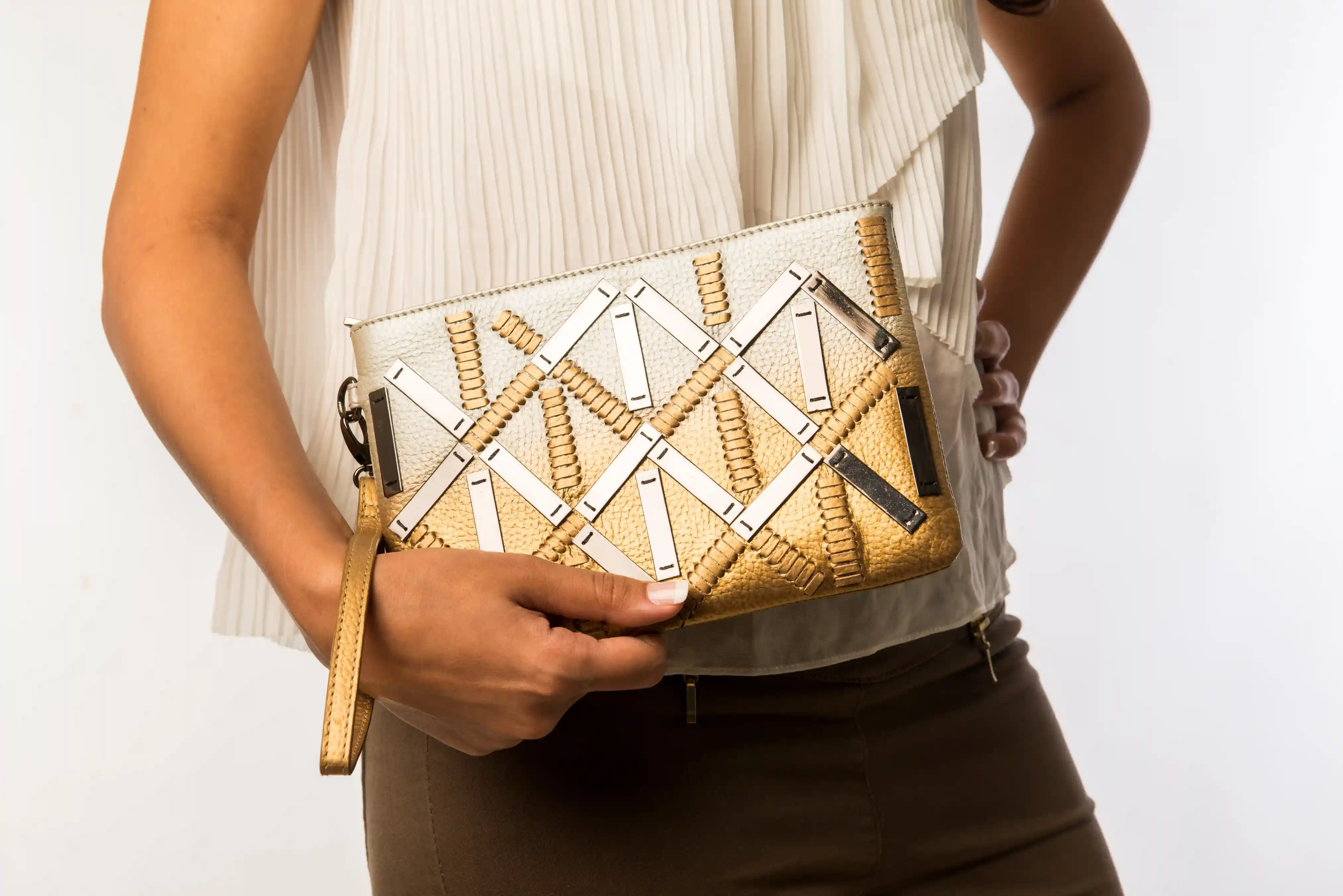 • Detachable leather wristlet