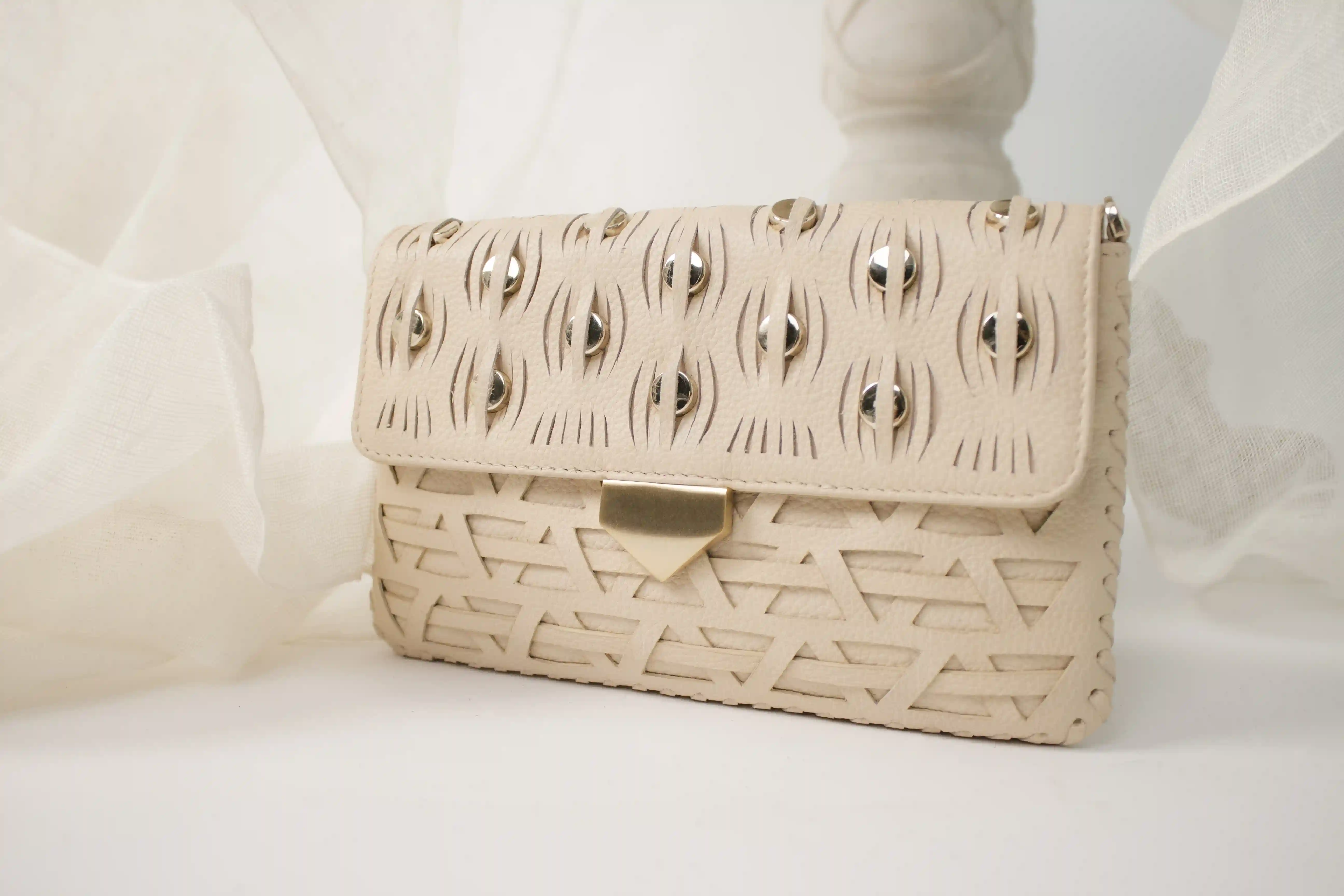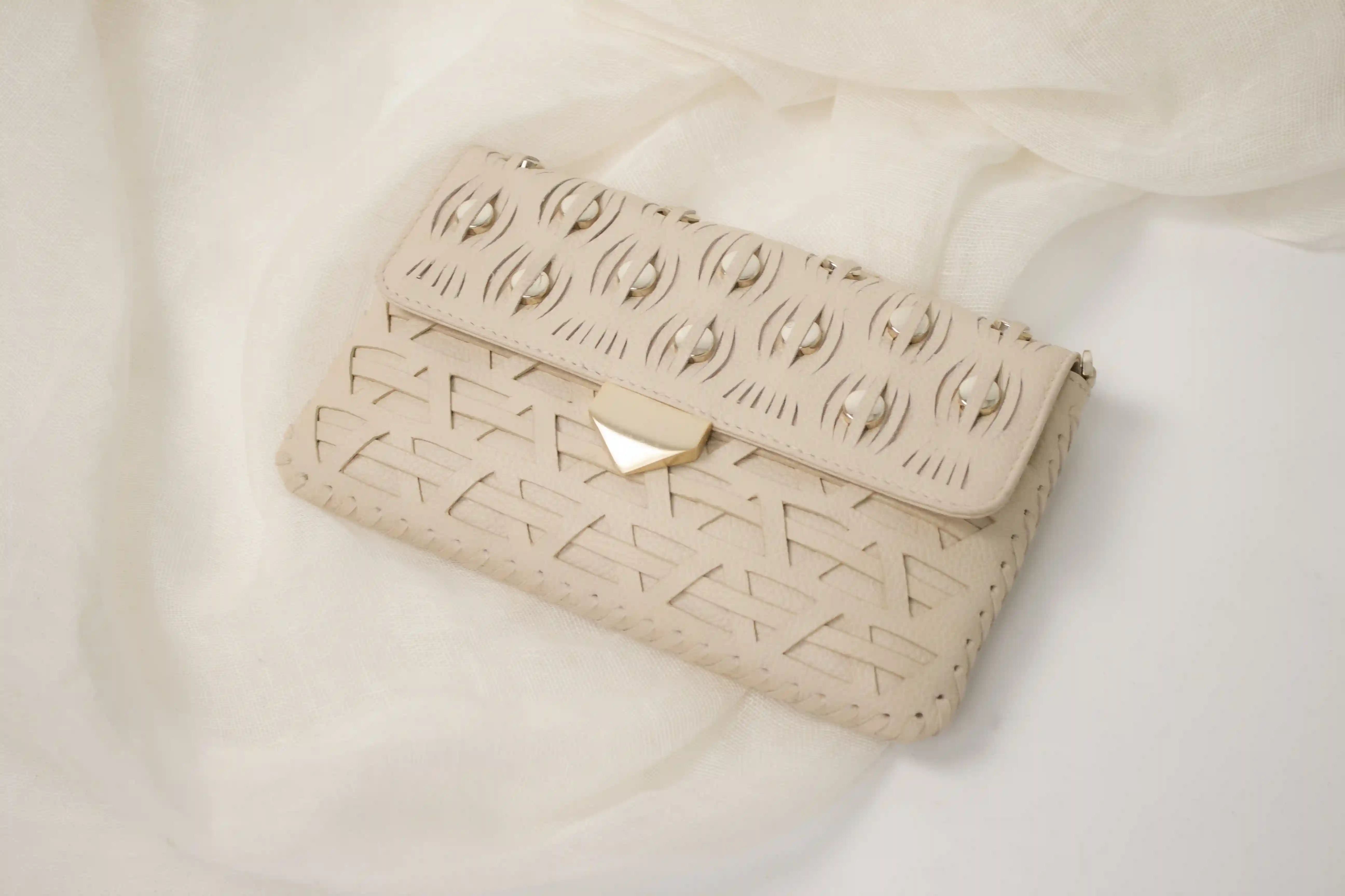 Triangle Weave Clutch In Nude
