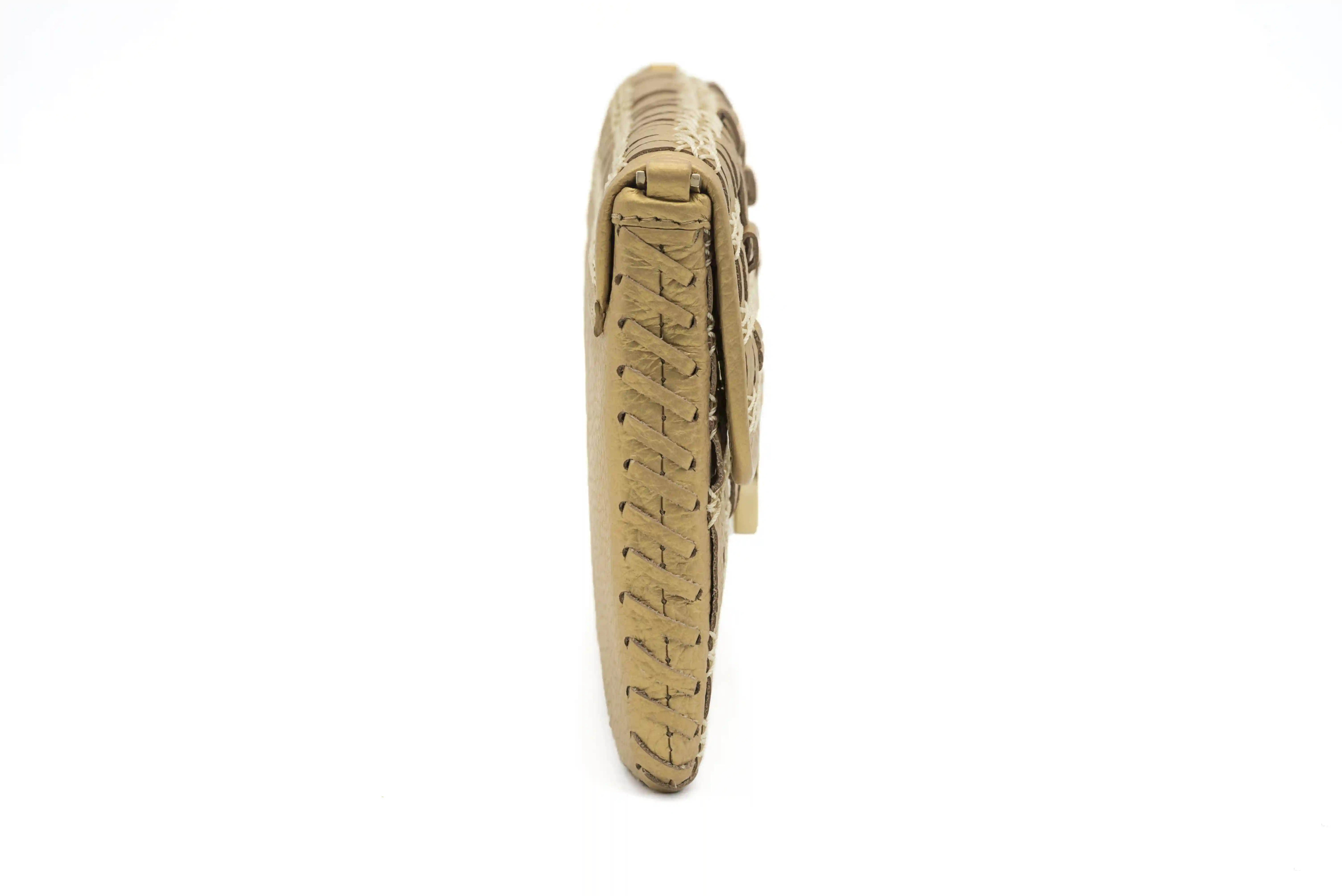 Inspired by ocean waves, the collection features intricate stitching and weaving patterns. The clutches are embellished with circular fittings and comes with a dust cover. It is shipped in a gift box.