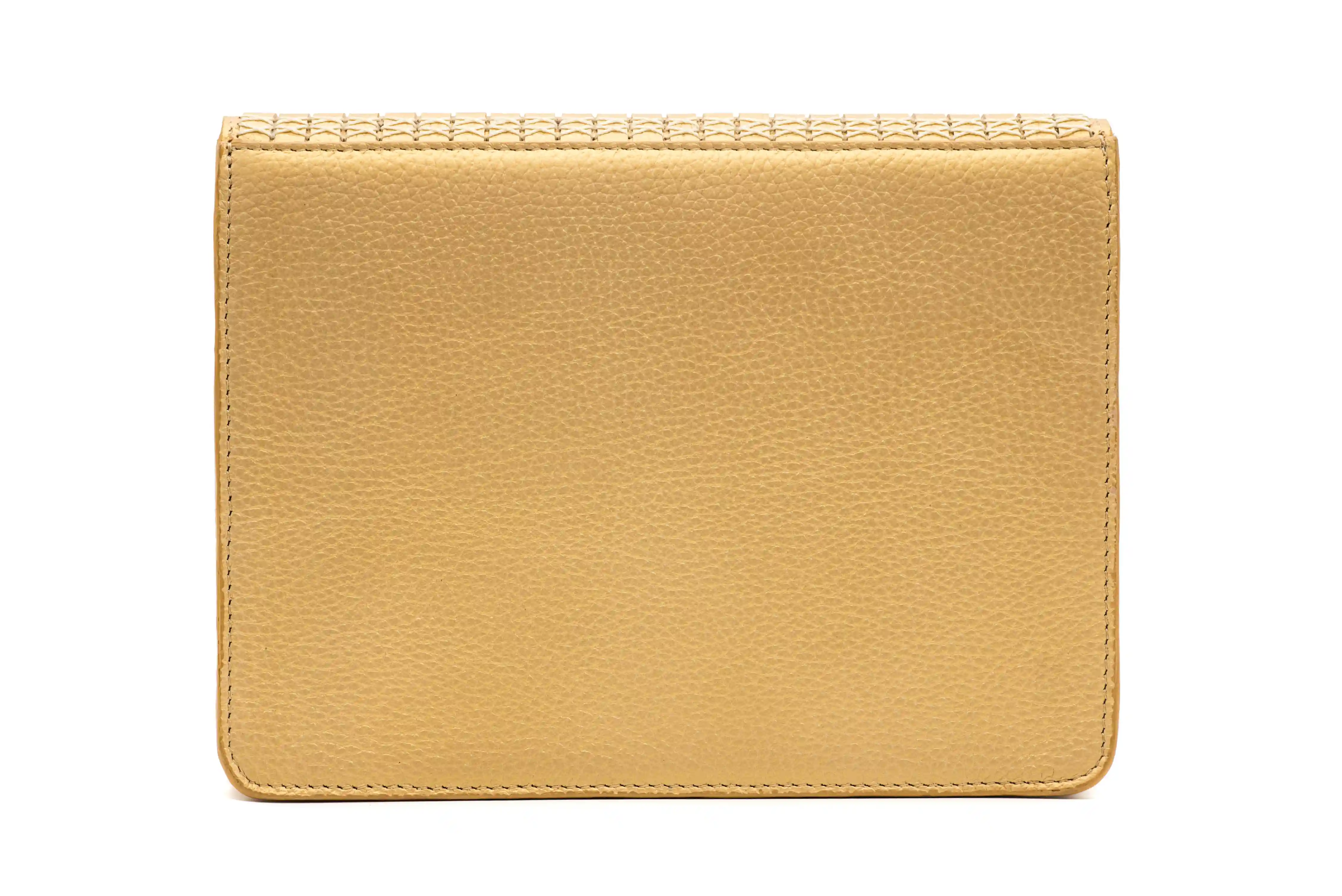 Inspired by ocean waves, the collection features intricate stitching and weaving patterns. The clutches are embellished with circular fittings and comes with a dust cover. It is shipped in a gift box.