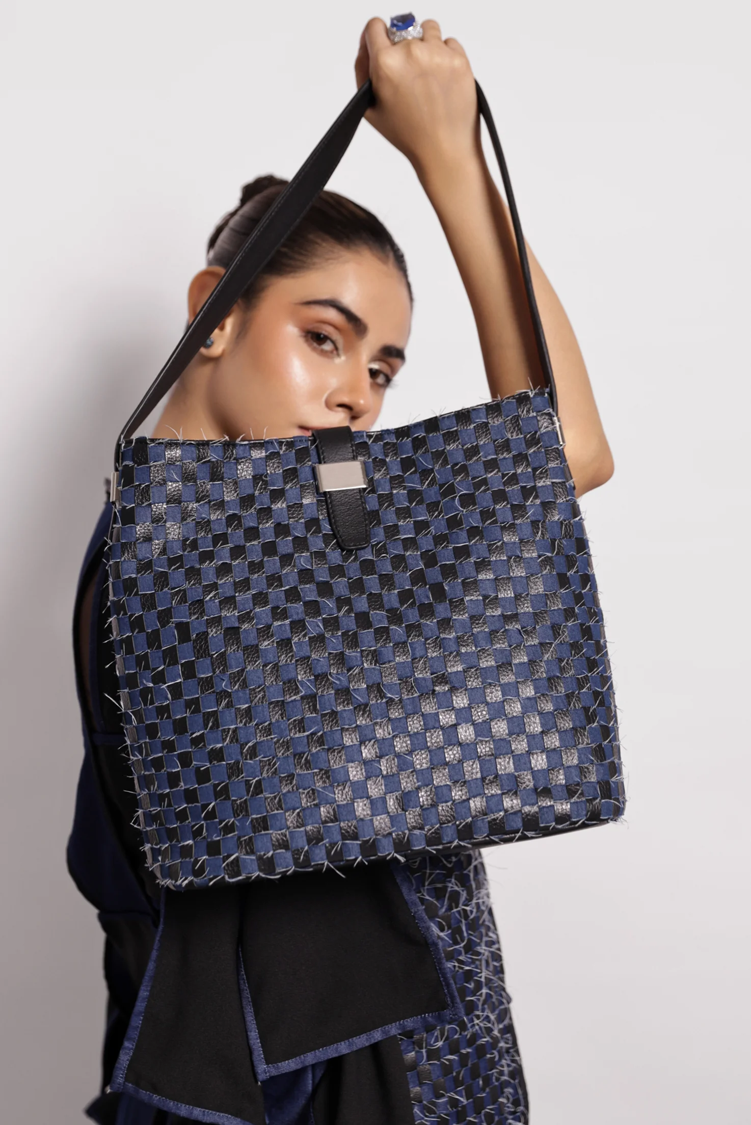 Woven Denim & Leather Mini Tote